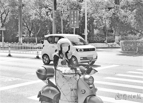 3月20日上午,记者在梅城嘉应大桥江南红绿灯路口、彬芳大道海关红绿灯路口等几个车流量大的十字路口处观察时发现,在等红绿灯的摩托车驾驶员中,好些人会拿出手机,低头浏览手机的信息或者听语音,个别人还会直接拨打电话或者用语音与他人沟通,以至于绿灯亮起,前车已行驶了很远,其车辆还没起步,更有甚者直接一手拿手机讲电话,一手控制油门让车辆行驶(如图,陈坚平摄)。