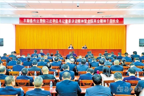 本报讯 日前,全县干部大会在会展中心召开,会议传达学习贯彻习近平总书记在全国两会上的重要讲话精神和全国两会精神,以及全省、全市传达贯彻习近平总书记重要讲话精神暨全国两会精神干部大会精神,对丰顺县贯彻落实工作作出部署安排。丰顺县委书记张志锋主持会议并讲话,强调要切实把思想和行动统一到习近平总书记、党中央决策部署上来,按照全国两会部署和省委省政府、市委市政府工作要求,坚定信心、开拓进取,真抓实干、勇毅前行,全力完成今年经济社会发展目标任务,争当建设苏区融湾先行区主力军,努力在消薄县中走在全省前列,推动丰顺苏区高质量振兴发展,为梅州苏区加快振兴、共同富裕,为广东在推进中国式现代化建设中走在前列,为强国建设、民族复兴作出丰顺应有贡献。丰顺县委副书记、县长罗达祥,县人大常委会主任邱翠茂,县委副书记夏兰亭出席会议。