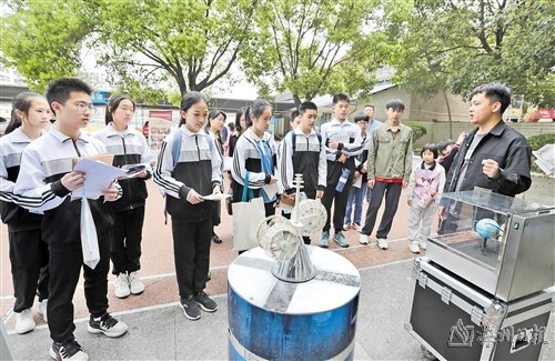 来到户外,学生们近距离参观卫星轨道展示和风云二号、风云三号气象卫星模型,以及增雨作业设备、观测仪器,了解设备原理及其在防灾减灾救灾中的作用。对于学生们提出的疑问,市气象局工作人员耐心为大家答疑解惑。此外,学生们还参观了真菌标本室、航天育种实验室、种质资源库等,并领取赤灵芝菌包,学习微生物在食品、环境领域的作用和对人体健康的影响等知识,感受前沿科技的魅力,形成爱科学、讲科学、用科学的氛围。