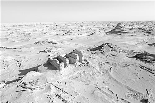 《史记·匈奴列传》,是楼兰在史籍中第一次亮相。汉武帝时,张骞凿通西域,开辟古丝绸之路,楼兰扼守南北两道之咽喉,商贾不绝,驼铃悠悠,一派繁荣景象。然而,辉煌数百年后,楼兰逐渐城郭巍然,人烟断绝。故城出土木简文书记载了当时耕地因干旱不能完成耕种任务的情况,专家分析,河流改道断流、罗布泊干涸是楼兰消亡的实质性原因。