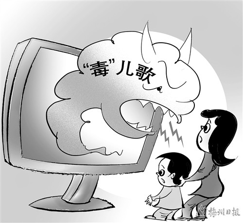 “一二三四五,上山打老虎,老虎不在家,就去找它妈。它妈想打架,就赏它妈两个大嘴巴……”有网友称,用网络电视给孩子播放儿歌时,竟出现了这样一首改编的儿歌,歌词让人感到不适。有媒体记者调查发现,一些家长口中的“毒儿歌”并非个例。一些儿歌中或掺杂脏话、或宣扬暴力、或带色情词汇,还有的歌词怪异,让不少家长直言毁“三观”。陶小莫/图