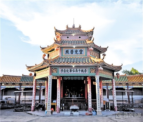 穿过牌坊门,沿村道走进彩旗岭。步入纪念亭,纪念亭为六角三层,高11.8米,除前柱用方形石柱和梅花石柱外,均为钢筋水泥柱梁构架,彩绘檐栏,用黄绿琉璃瓦盖成翘角飞檐瓦顶。亭顶为葫芦形。一层正额嵌有亭名“李槐千长仁爷纪念亭”石匾,二层正额刻“灵光普照”。正面石柱刻联云:“忠烈溯先朝,报国成仁,千长勋名垂史册;威灵归故土,御灾捍患,万年俎豆壮旗山。”左右各竖一石华表,表座刻有载在《嘉应州志》《长乐县志》中的李槐生平史料。亭内供有李槐金木雕像,置有明代石香炉、石茶船、石坛亭等。