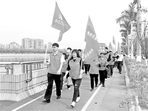 本报讯 (记者朱绮辉)为宣传第三十二届“世界水日”、第三十七届“中国水周”,近日,梅州市河长办联合梅州市嘉城义工协会、泽山口腔医院开展徒步宣传巡河护河志愿服务活动,共有约60名志愿者参加。