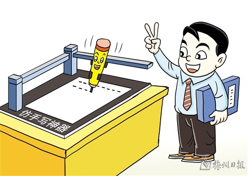 热销3万+,一款“仿手写神器”在电商平台火了。机器人提起笔摆动“双臂”,一起一落之间,纸上就出现了几行像真人写出来的字。当前,手写机器人已成为一些苦于手写材料的“打工人”的办公神器。有专家表示,要求各类材料全部都手写,是典型的形式主义表现。这无助于解决考核监督期望解决的问题,甚至适得其反。刘志永/图