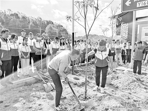 “把汗水洒在家乡的土地上,还能体验种树的乐趣,我感到很开心。”返乡大学生杜晓婷说,能够为家乡绿化工作贡献一份力量,是一件很有意义的事。据了解,他们是通过“平远青年”公众号、“i志愿”小程序等途径,得知家乡正在实施绿美生态建设行动,便报名参加,以实际行动为“百千万工程”增绿添彩。