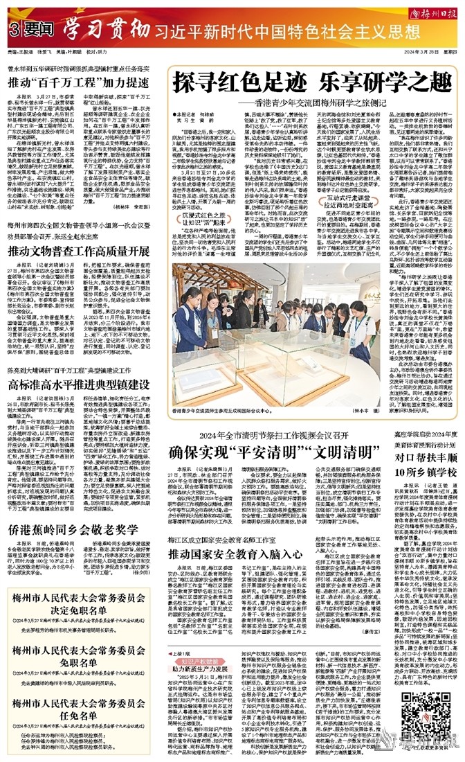 3月21日至27日,20多名来自香港妙法寺刘金龙中学的学生组成香港青少年交流团走进世界客都梅州。其间,她们探寻红色足迹、游览名胜古迹、体验风土人情,开展了为期一周的交流研习活动。