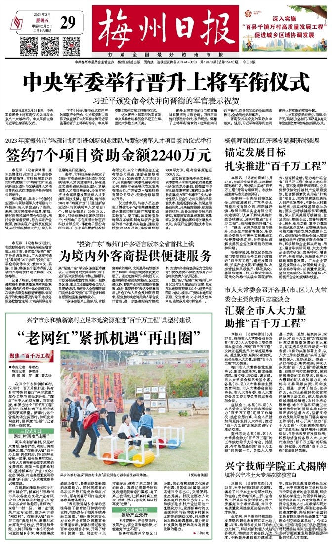 本报讯 (记者陈思杰)3月28日,兴宁技师学院正式揭牌,填补了兴宁本土大专层次院校的空白,成为梅州第二所、全省第三所县区级技师学院,进一步擦亮兴宁教育品牌,为兴宁高质量发展提供更加坚实的人才保障。