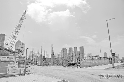 图为3月27日拍摄的斯里兰卡科伦坡港口城施工现场。