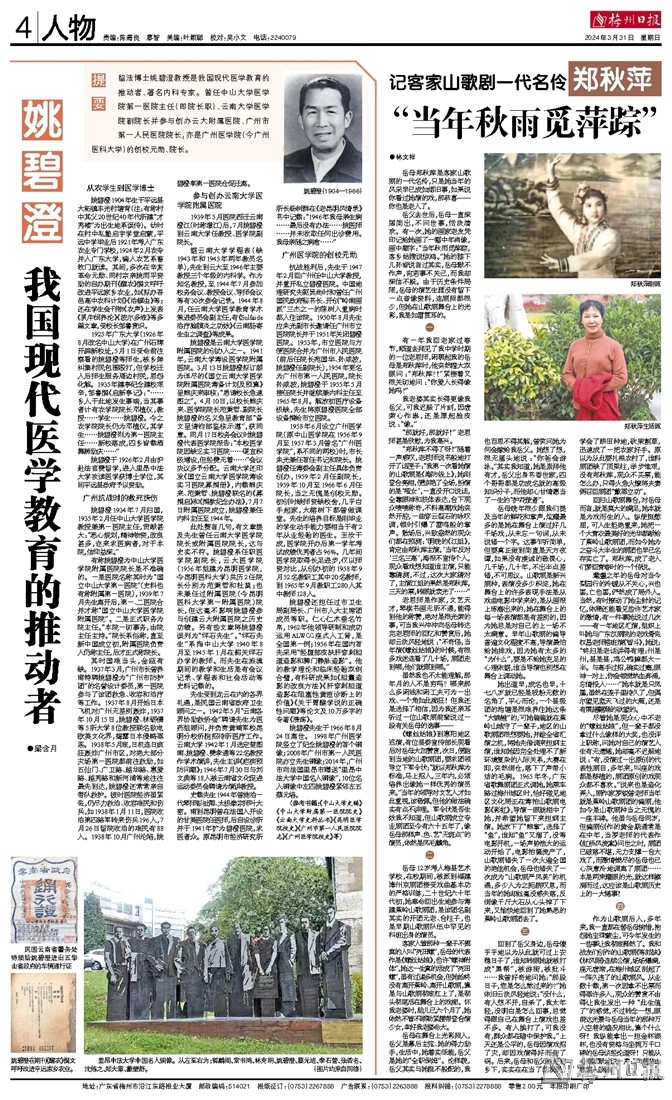 姚碧澄1934年7月归国,1935年2月任中山大学医学院教授兼第一医院主任,贡献甚大:“悉心规划,精神物资,改良甚多,迩来求医病者,对于本院,信仰益深。”