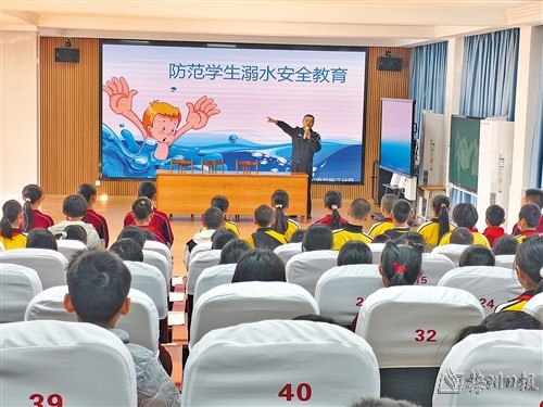 “同学们,你们知道腿抽筋是什么原因造成的吗?发生腿抽筋情况我们应该怎么处理呢?”日前,梅江区西街小学邀请梅州市公安局梅江分局西郊派出所民警走进该校,为学生上了一堂生动而实用的防溺水安全教育课。此外,该校各班还结合真实案例、视频教学等内容召开“防溺水安全教育”主题班会,呼吁学生预防溺水、珍爱生命,增强学生的安全意识和自救能力。