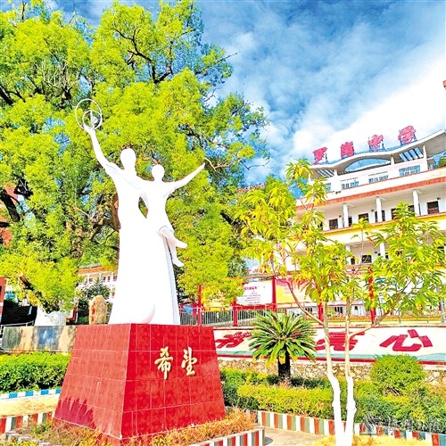 小车越过罗岗坳,远远就望见山峦苍翠的黄龙山下一片茂密的树林,树林中的现代化楼宇时隐时现,给人一种神秘的感觉。那就是1961年高考录取率91.8%名列全省第二名,被誉为“山沟飞出金凤凰”的罗岗中学(兴宁第二中学)。