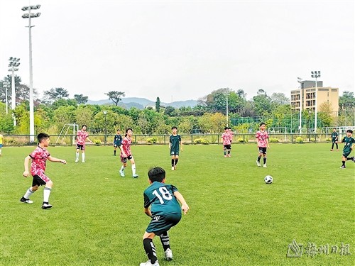 梅州是中国内地现代足球运动最早开始的地方,悠久的足球运动传统,成就了球王李惠堂等众多的足球明星,也成就了“足球之乡”的美名。在为期4天的“足球之旅”中,30多名香港青少年与梅县区富力足球学校的学生共同训练、共同生活。在绿茵场上,他们奔跑着、拼搏着,展现出了青春的活力和激情。
