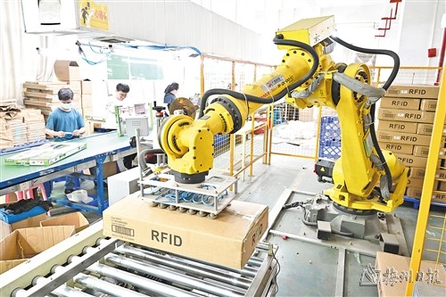 在广东泰昌科技发展有限公司的生产车间,机械臂灵活起落,智能搬运货物;车间另一侧,自动螺丝机也在有条不紊地运作。“现在拧螺丝都高科技了,机器节省了很多的人力,品质也提升了很多。”泰昌科技负责人谢炜炜边走边与记者分享着企业的变化。