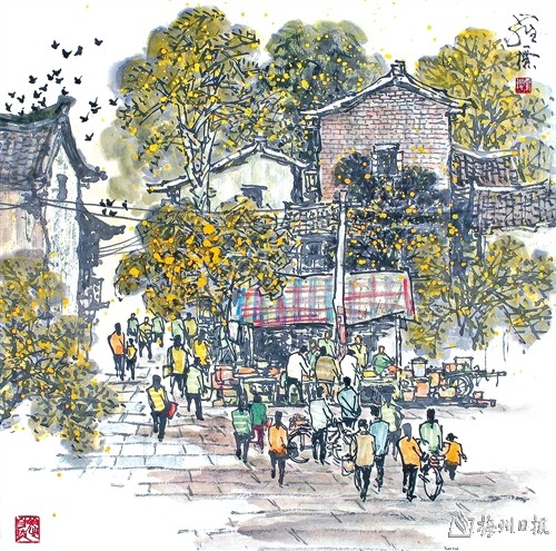 记:您办的画廊叫“围龙画廊”,办的画刊叫《围龙画刊》,围龙屋是我们客家传统民居,您的画作主题大多也是反映客家的民俗、风情。您热衷笔墨丹青几十年,跟家乡这片山水想必有很深厚的联系。请谈谈您与家乡之间的感情。