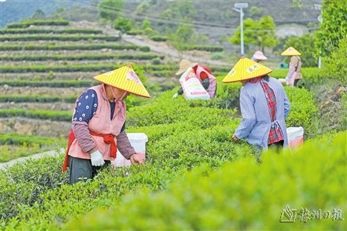 随着气温逐渐上升,梅州各地茶园的春茶陆续吐露新芽,迎来了采摘黄金季。茶农、茶企抢抓时间,采制今年头茬春茶,处处洋溢着收获的喜悦。