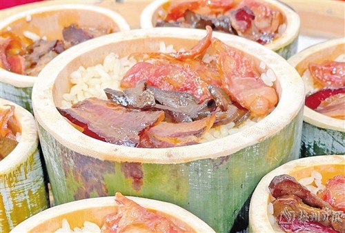 黄金菩米卷、鲜鲍菩米粥、三丝鱼云菩米羹、菩米酿猪肚、菩米酿粄、菩米寿司……大赛现场,众多大厨以菩米为主要原料,纷纷拿出创意和厨艺,把菩米变成各式色香味俱全的美食,现场一阵阵诱人的香味氤氲飘荡。经过评委评选,来自五华县梅林镇尖山分社的古汉鑫获得大赛一等奖,此外还评出二等奖2名,三等奖7名。