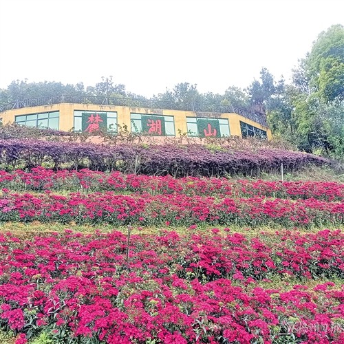 沿着左前方的大道走,穿过黄花风铃木怒放的草暖园,我们折回到景区入口不远的景湖阁。走入标志着客家人心灵手巧、挂着喜庆红灯笼的景湖阁竹楼,我们凭着竹围栏向周边观赏,湖光山色,翠林掩映的美景再次映入眼帘,真是再次让人悦目怡神。静坐在竹楼里边的竹秋千架上,晃动着秋千,耳边传着吱呀吱呀的秋千摇动声,闭目神游麓湖山景区,一幅水墨丹青的美妙画卷便在脑海中铺展开……