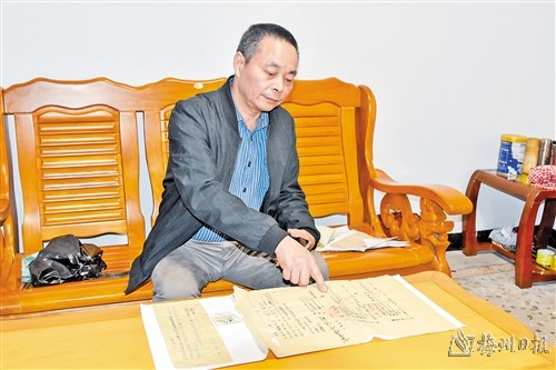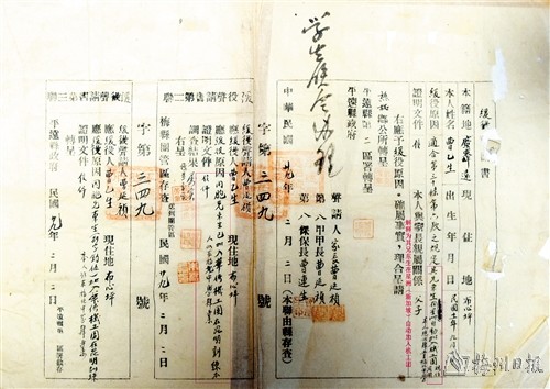光口头说的内容还欠缺说服力。为此,曹永裕拿出了一叠文件,跟记者介绍了起来。“这些都是当时我奶奶保存下来的资料,这份是我爸去服兵役时的证明材料,这份是当时平远县开具的家庭情况调查表。”曹永裕指着一份父亲到梅北中学服兵役的学生家属证明说道,上面清晰可见“曹乙生其兄东生在星洲自动加入机工团”“同胞兄东生(别名钧伍)加入华侨机工团在昆明训练”等字眼。这些进一步验证了曹伍钧就是曹永裕一直在寻找的大伯曹东生。