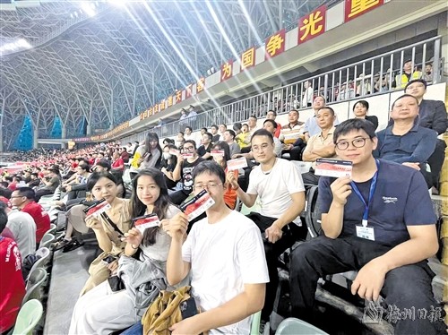 “梅州客家队加油!”4月10日晚,恰逢中超联赛第5轮打响,梅州客家坐镇主场五华惠堂体育场,迎战青岛海牛队。参访团在结束白天的参访活动后,特意前往现场为梅州客家队加油鼓劲、呐喊助威,享受足球的激情与快乐。