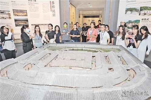 除了浓厚的红色文化,梅州还是客家民系的发展壮大之地,亦是全球客家人的心灵家园。在梅期间,参访团走进中国客家博物馆,进一步了解客家渊源、客家风俗、客家民居、客家文化和客家精神等内容,感受积淀深厚的客家文化底蕴。
