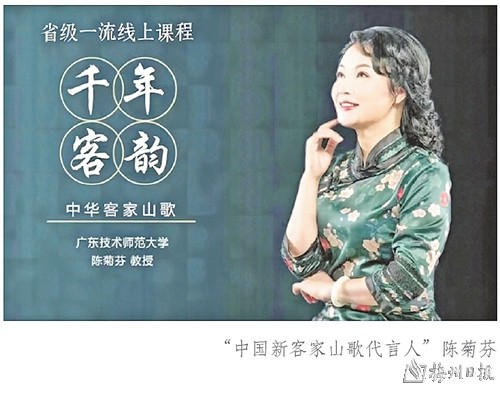 当今时代为弘扬中华优秀传统文化提供了好时机。陈菊芬带领学生进行“三下乡”社会实践活动和学校的大创项目,助推客家“非遗”项目走进校园。陈菊芬对客家山歌领域进行跨界的交叉学科的研究,以山歌为抓手,将著作、影视纪录片、课堂教学、非遗美育和传统文化进校园等联系起来,拓宽文化传承传播的道路。