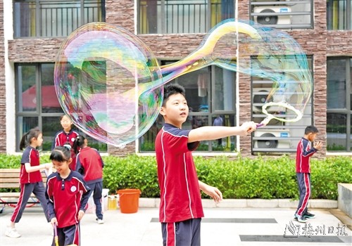 除了精彩的表演外,学校还把校园变成科技游乐场,在多个户外区域设置了别具一格的科学“体验区”,让学生们近距离体验科技的魅力。记者了解到,科学“体验区”共设置了“平衡棋”“桌上足球”“磁力对战棋”“智能体感飞行器”“3D糖人画”等22项互动体验小项目,为了让每个年级的学生都能充分体验到科学的乐趣,学校以学段为单位,采取轮流体验的方式,让同学们参与其中。