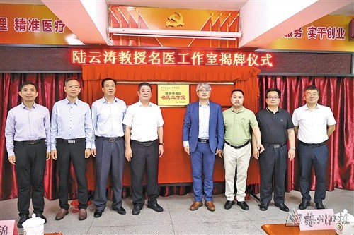 本报讯 (记者江波 通讯员宋育妮)3月31日,南方医科大学南方医院陆云涛教授名医工作室揭牌仪式在广州中医药大学梅州医院(梅州市中医医院、梅州市田家炳医院)举行。仪式由医院党委书记郑青同志主持,王锦院长带领医院领导班子成员、行政科室负责同志及脑病科医护人员代表参加仪式。