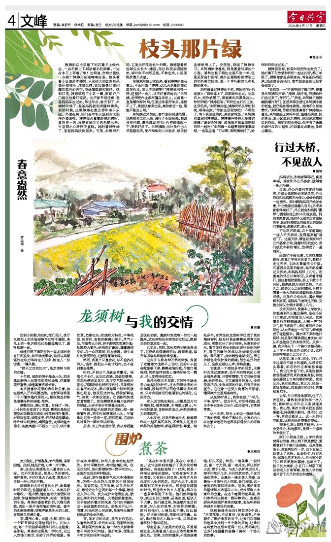 人生在世,总是不断地失去,能够跟你在一起不离不弃的,不管是人还是自然界的其他物种,都值得珍惜、尊重。相处多年,有灵性的龙须树早已成了我的精神寄托,独处时我会静静地观赏它的成长,观察它分了多少枝条,长高到多少米,看它怎样把长剑般的绿叶伸出防护栏,看它的嫩叶怎样从淡绿渐变成深绿。看书累了,会依赖性地凝视它,用它的绿色来保护我的眼睛;想念在外的女儿了,会跟它倾吐心声,排解寂寞。