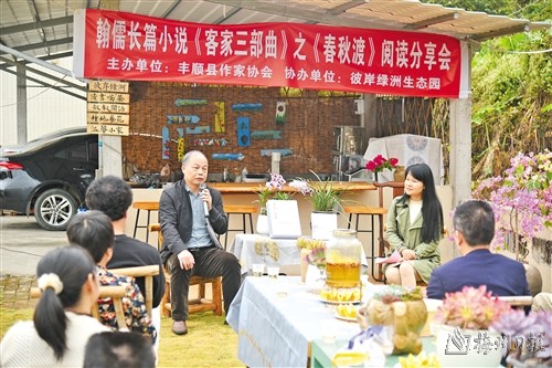 彭:没错,这两年来我走进学校多了,不遗余力开展“文学进校园”活动,也倡议其他作者也多开展这项活动。感谢这些学校,尤其是我县的学校,他们从新华书店购买了我的作品《归宿》《流年河》《春秋渡》这三部长篇小说(“客家三部曲”)。因为这些作品都是取材客家文化的,学校认为很有必要向师生推介。我是作者,学校邀我去跟师生见见面,互动互动。我是很乐意的。文学的苗子在校园,文学的未来也在校园。开展“文学进校园”活动也有这方面的思考。