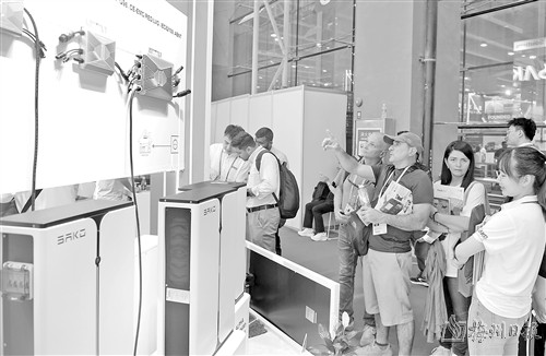 4月16日,采购商在第135届广交会上了解太阳能发电设备。