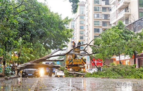 本报讯 (记者张莹娜)4月20日下午,受雷雨大风强对流天气影响,梅城部分路段出现路灯倒塌以及树木倒伏、断枝、折枝等情况,影响过往车辆、行人通行安全。梅江区住建局迅速组织园林绿化中心、公园管理中心抢险人员开展清障保通工作。