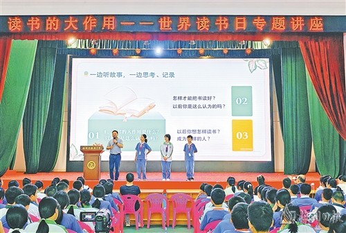 “这次读书日活动不仅是学校语文组的科研课题与读书活动相结合,促进学生全面发展的一个生动实践,还是学校推进‘书香校园’建设工作中的一环。”杨江东介绍,作为读书日的系列活动之一,学校还在立心大礼堂开展了“读书的大作用”专题讲座,讲座由学校董事长葛成石老师主讲,他以故事代替说教,启迪学生领悟生命的广度和深度。平日里,学校还开展了专题讲座、名家诵读、好书推荐、制作书签等丰富多彩的阅读活动,营造了浓郁的读书氛围。