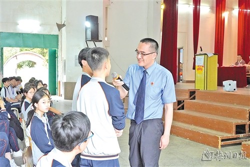 “我是来自梅县区检察院的检察官,今天通过校园广播的形式讲一讲法律知识……”在梅县区宪梓中学,检察干警通过校园广播为师生带来一堂生动有趣的法治宣讲课,结合典型案例以案释法,详细讲解《未成年人保护法》等相关法律法规以及刑事责任年龄和相应的法律责任,普及预防学生欺凌的法律知识和应对方法,进一步提升学生安全防范意识和自我保护能力。