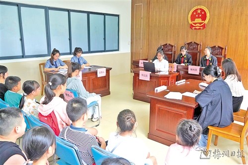 “现在宣布开庭……”随着法槌敲响,一场模拟法庭在梅县区青少年法治教育实践基地开庭,工作人员分别化身审判员、公诉人、书记员等角色,就一起网络犯罪案件进行审理。精彩的演绎让参加“梅检扬帆——小小检察官”法治夏令营的学生身临其境地体验庭审过程,切实感受法律的庄严和神圣,提升法治意识和自我保护能力,同时也实现了法治教育从单一说教到牵引式学习的转变。