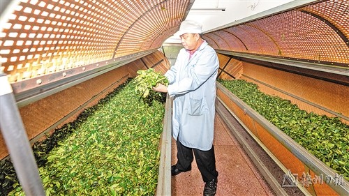 “我种了30亩茶,自己也制茶,加工不完的茶叶就拿到这里卖。”正在鹏发茶业加工厂收茶窗口交易的茶农罗勇辉笑着说,加工厂每天都在收购新鲜茶叶,价格也公道,村里的茶农都到这里来销售。