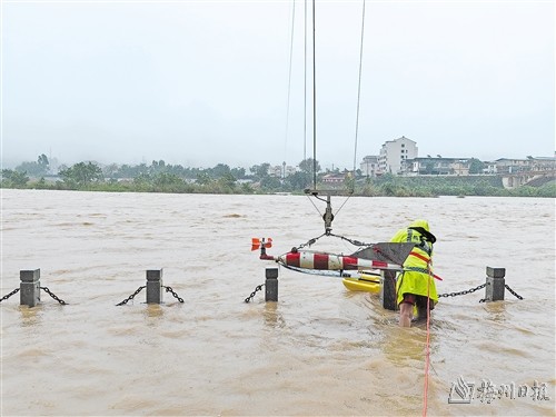 在长沙镇梅江河一带,该镇镇村两级工作人员对河道水位、救生设备、堤防安全等情况进行巡查,及时上报并排除安全隐患。