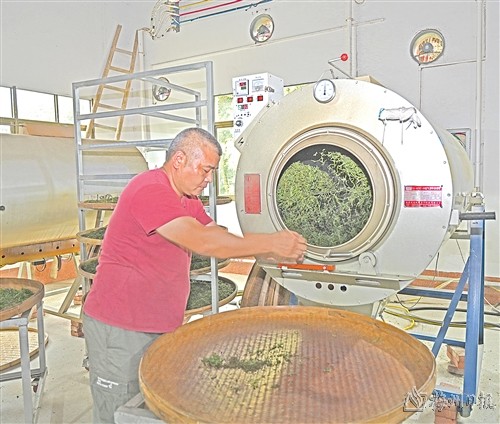 山上茶园采茶忙,山下茶厂制茶香。制茶加工厂里,茶农林远东与村民们在自动化茶叶生产线上来回忙碌,杀青机、萎凋机、曲毫机、烘干机等设备高效运行,机器轰鸣声不断。