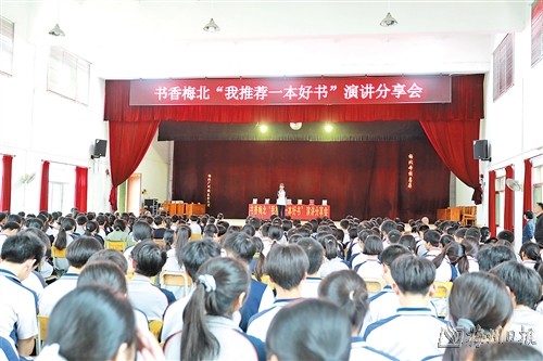 这是梅北中学开展“书香梅北”读书系列主题活动的一个缩影。近年来,梅北中学努力提升学校的文化品位,营造“书声琅琅,书香满校园”的良好氛围,引导师生与书籍为友,让阅读成为习惯,使学生在梅北中学就读的三年徜徉于经典的殿堂,走“读书——明德——成才——担当”之路。“我们制定了‘阅读点亮人生,知识改变命运’为主题的具体实施方案,激发学生的阅读兴趣,培养学生良好的读书习惯,使阅读真正成为学生的自觉行动和生活需要。”校长叶敏介绍道。