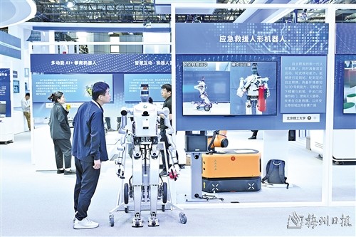 这是中关村展示中心常设展上展示的一款应急救援人形机器人。