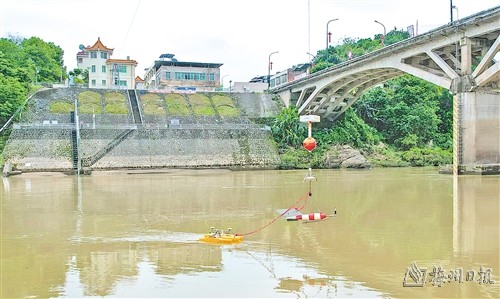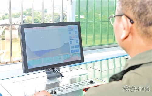 梅州水文测报中心工作人员陈海峰曾在横山水文站驻守20余年。记者见到他时,他正在操控水文缆道控制系统,只见300斤重的铅鱼牵引着声学多普勒流速剖面仪沿着缆道在河两岸来回,不到10分钟,便测量出了河流断面、流速、流量。“现在的条件比以前好太多了,都是机器操作。以前得驾驶测船人工放铅鱼、布垂线、测定点流速,还要实时手工计算结果,没有一个小时根本完成不了这一系列的工作。”陈海峰告诉记者,横山水文站是梅州市水文监测要素最齐全的站点,拥有无人机、走航式ADCP(声学多普勒流速剖面仪)、遥控船、莱卡全站仪、雷达流量计等先进水文监测设备,并建立了水雨情遥测系统,目前已实现了雨量、蒸发、水位、流量、墒情的实时监控。