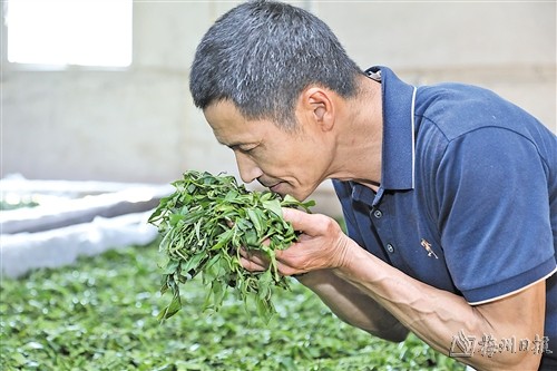 “据清康熙元年出版的《镇平县志》记载,黄坑村民于1662年开始,在山高林密的缓坡地上零星种植茶树。现在,全村以茶为生,家家户户都种茶,茶叶总种植面积超过3000亩。”晨阳初照,沿着蜿蜒的山路进入黄坑村,薄雾随微风如轻纱般在茶园间拂动。黄坑村党总支部书记、村委会主任曾钰明向记者娓娓道来,当地种茶已有360多年历史。“广东省农业科学院茶叶研究所健康茶生产示范基地”也在黄坑村挂牌成立,为黄坑村乃至蕉岭县茶产业发展搭建了一个新的发展平台。