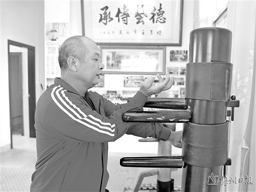 “过去,由于现实需要,练习武术讲究实用,只求在实际运用上能真正起到防身的效果。李家教拳就是非常典型的实用拳种,不图花架子。它包括套路演练、套路对练、排练功三个方面,整体套路结构严谨,动作紧凑饱满,进攻技击性强,每个套路一般都遵循一定的起收式。”讲述之间,李家教拳第七代传承人、梅州市市级非遗传承人罗旺平展示了李家教拳常用的招式,只见他左手一挥,挡住对手的攻击,顺势往前一冲拳,直击对方,毫不拖泥带水。
