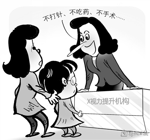 近日有媒体报道,有一家专做视力提升生意的连锁机构对外声称,不吃药、不手术,仅仅使用他们研制的“神药”“神奇的仪器”,就能帮助孩子提升视力,号称已治愈三万多名近视患者。事实上,该连锁机构将美容仪充当医疗器械,其百年秘方保健膏竟是护肤品。专家表示,目前没有方法能有效逆转真性近视眼。陶小莫/图
