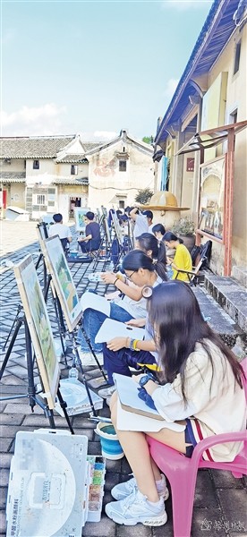 走进大埔县北塘村,老屋旁边、竹林深处、漳溪河畔,随处可见一排排支起的画板,美术专业的师生们正在画板上涂涂抹抹,勾画出一幅幅乡村美景。这是我市首个乡村书画院——大埔县北塘书画院成立后,北塘村写生经济被激活的生动写照。