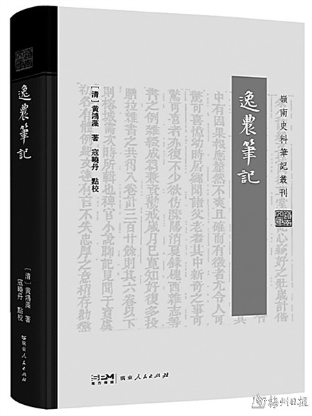 梅州籍著名诗人、外交家黄遵宪之父黄鸿藻的著作《逸农笔记》,近日点校出版,该书列入广东人民出版社《岭南史料笔记丛刊》,点校人为寇晓丹,系广东省立中山图书馆(广东省古籍保护中心)青年馆员。黄鸿藻为晚清举人,嘉应州攀桂坊人氏,曾在京城和广西等地任官。
