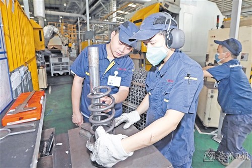 以课题研究为抓手,悬架弹簧生产线攻坚组潜心培育人才。梅州广汽汽车弹簧有限公司生产部副部长、悬架弹簧生产线攻坚组指导员李鑫告诉记者,一方面,公司定期开展全员改善提案活动、劳动技能竞赛等,让员工从工作改善中获得成就、在培训和竞赛中提升技能。另一方面,公司每年根据员工反馈的技术问题,设立技术攻关课题,凝聚工匠精神,合力突破生产效率瓶颈。过去一年,攻坚组完成科技创新提案47项,提案涉及材料降本、设备改善、生产效率提升等方方面面,累计为企业节约成本771万元。截至2023年底,攻坚组获得实用型和发明类专利17项,有效增强了企业自主创新能力。