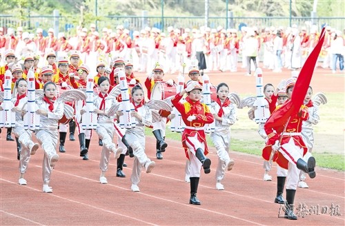 比赛现场,25支鼓号仪仗队伍依次接受检阅。灿烂的笑容、矫健的步伐、整齐的队形展现出少先队员们积极向上的精神风貌;嘹亮的号声、和谐的乐章、激扬的鼓点,吹奏出少先队员们的欢乐与激昂。经过激烈角逐,比赛共评出特等奖5个、一等奖8个、二等奖12个、最佳组织奖13个、优秀指挥员奖10个,并举行颁奖仪式。