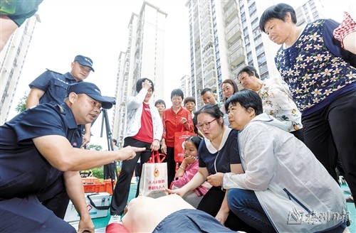 活动现场,工作人员耐心向社区居民讲解防灾减灾知识,帮助提高防灾减灾意识和自救互救能力;消防救援队员邀请居民现场操作灭火器,练习灭火技能。水下机器人、雷达生命探测仪……造型独特的应急救援装备吸引了不少社区居民驻足观看,工作人员详细介绍这些装备的用途。为达到“人人讲安全,个个会应急”的良好效果,活动现场还邀请专业救护人员讲解示范“海姆立克急救法”“心肺复苏”等应急救护技能的操作手法和注意事项,并“一对一”开展教学指导,帮助社区居民掌握急救技能。