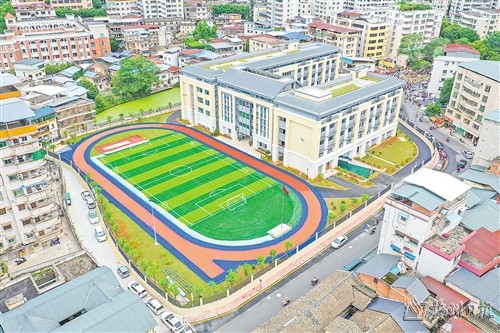 金山小学新校区位于梅江区文保路,于2023年9月落成,规划24个教学班、1080个学位,配套建设1个200米运动场、1个标准五人制足球场和拥有205个车位的地下车库等设施,以及科学馆、电子阅览室、校园电视台、智慧图书馆、数字音乐教室等功能室。“新校区不仅更新了智能化教学设备,进一步优化了课堂教学质量,而且新增了一些功能室,能最大化满足学生活动需求。”金山小学校长叶迎春说。