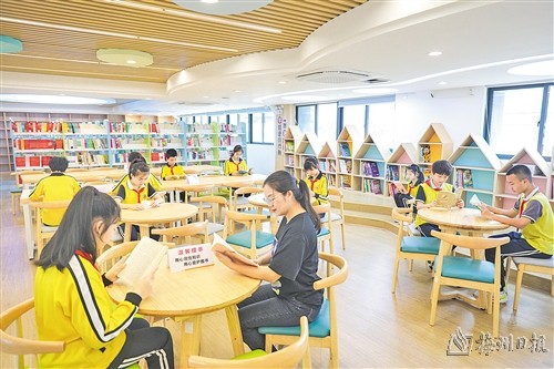 近年来,梅江区持续优化办学条件,增加优质教育资源,先后新建风眠小学、芹洋学校、市实验小学、元城小学、金山小学新校区等8所学校,扩建伯聪学校、会文学校,累计增加学位15000多个。